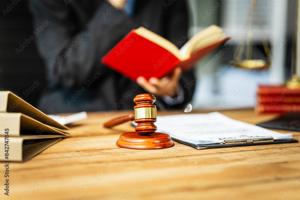 A young businesswoman is working at her desk, diligently preparing legal briefs and reviewing evidence for an upcoming trial, demonstrating her expertise as a lawyer in litigation and advocacy.