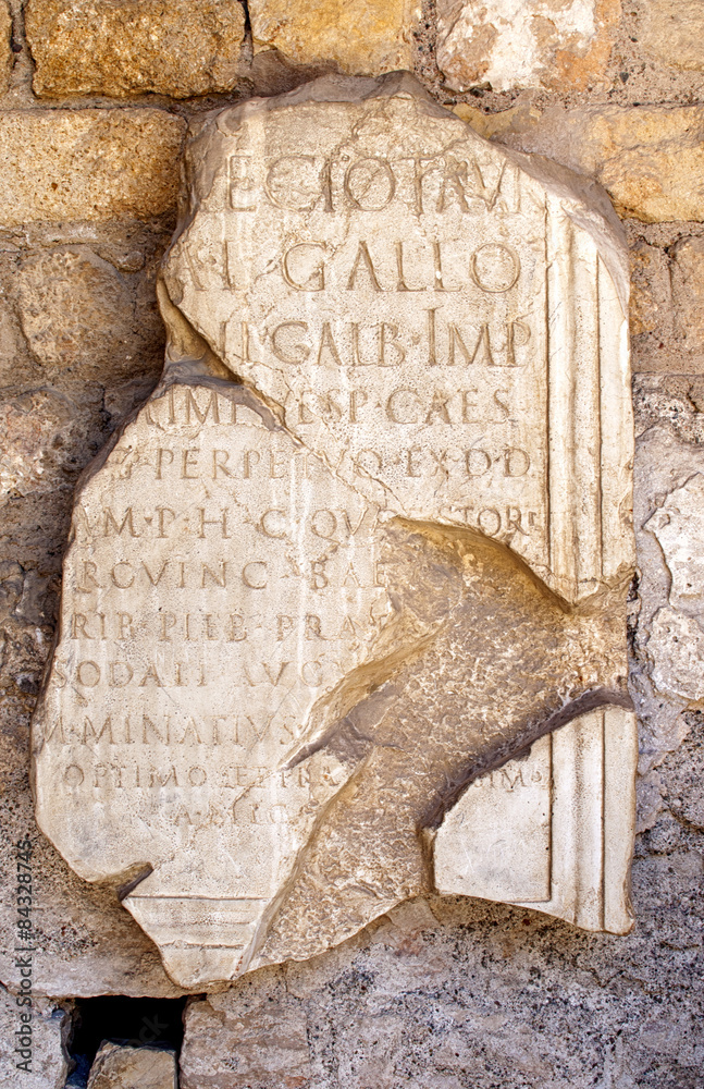 Latin illegible inscritption on ancient stone, Tarraco, Tarragon