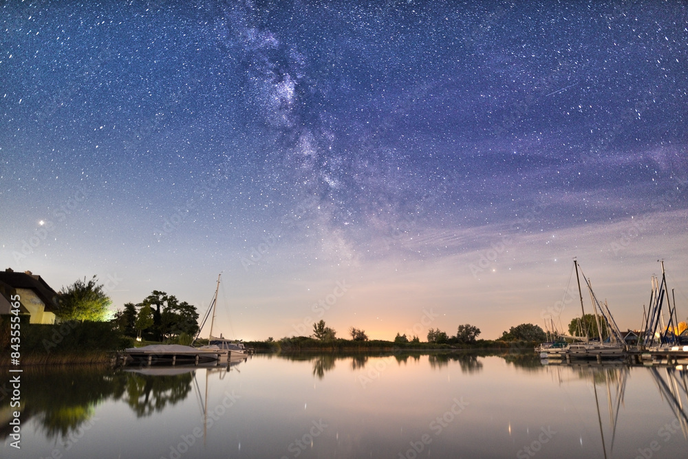 Milky way over lake Neusiedlersee in Burgenland, Austria