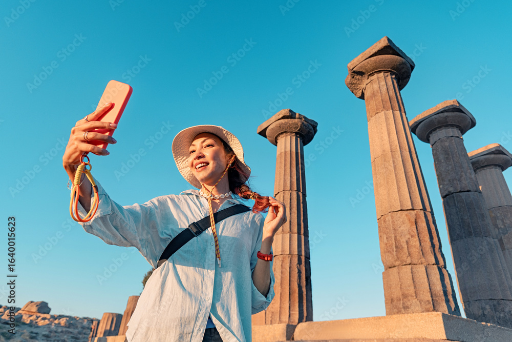 Young boy with a facial mask looking thoughtfully at his reflection in the bathroom mirror. He is wearing a green tank top and has long hair.