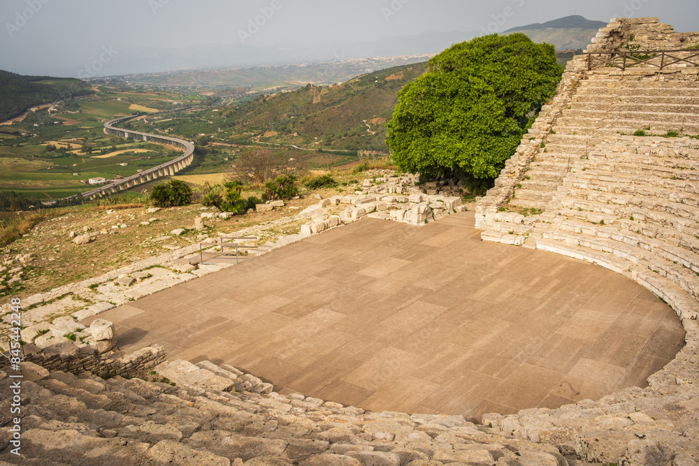Archaeological Park of Segesta ruins in Sicily , Italy, the main theatre up the hill
