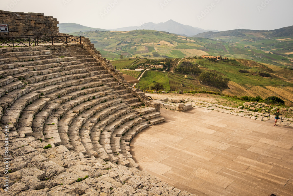 Archaeological Park of Segesta ruins in Sicily , Italy, the main theatre up the hill