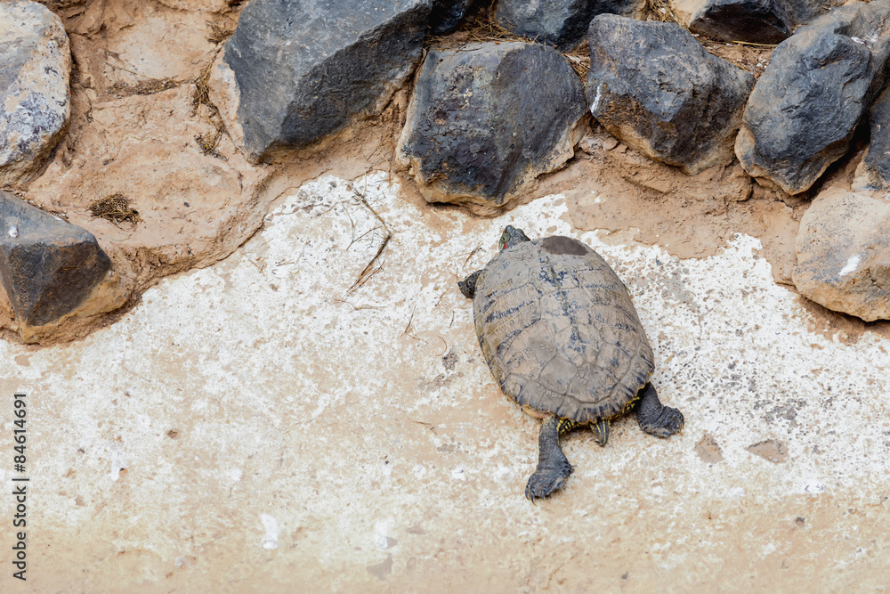 Turtle or tortoise on stone shore