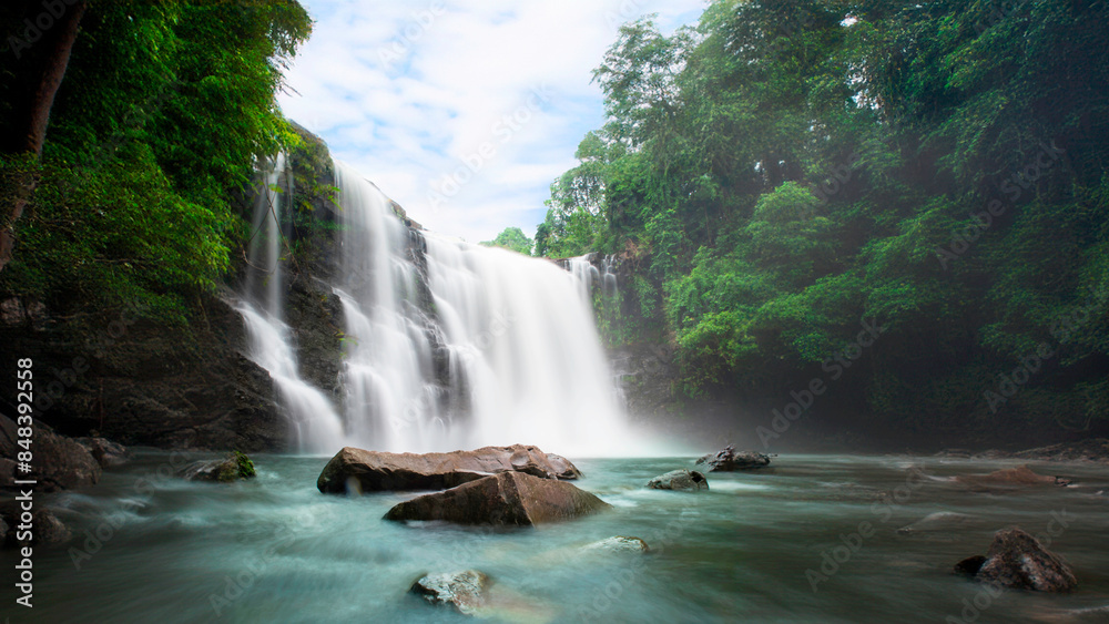 Beauty in nature, amazing waterfall in tropical forest of national park, Thailand