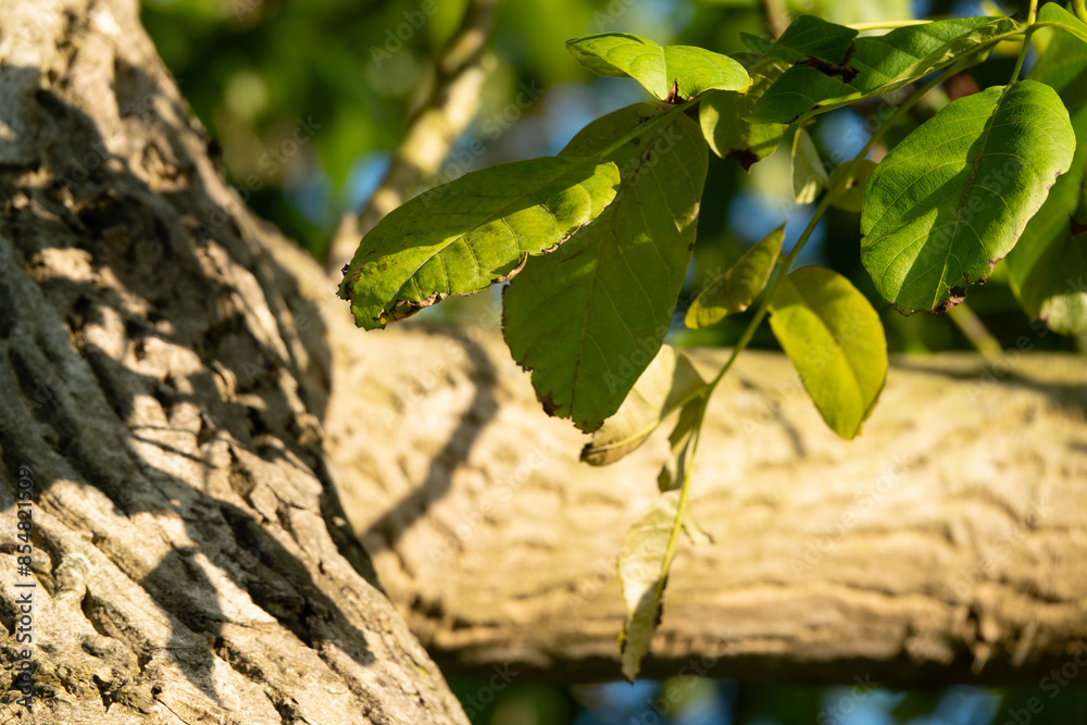 Walnussbaum Äste in schwindelerregender Höhe in Nahaufnahme