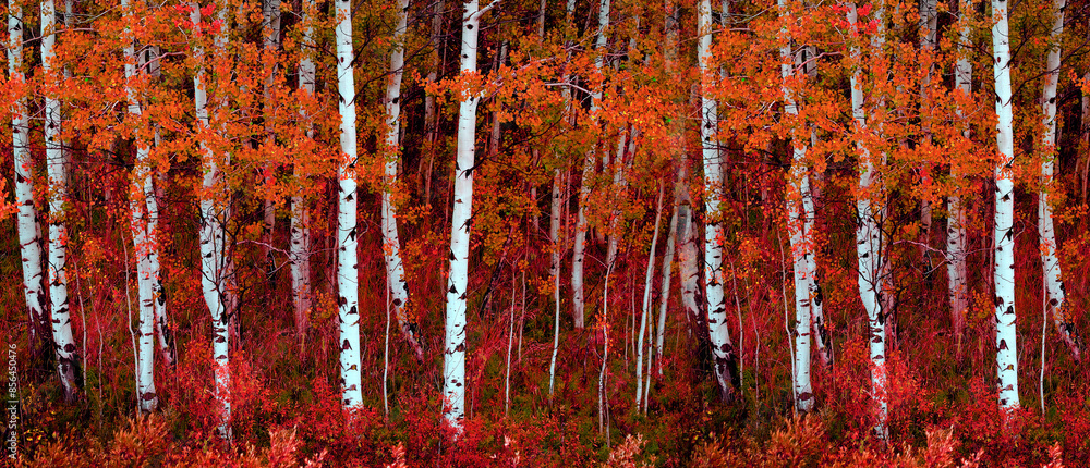 Aspen Trees in Fall with Colors Lush Forest Birch Red and Orange Autumn Leaves