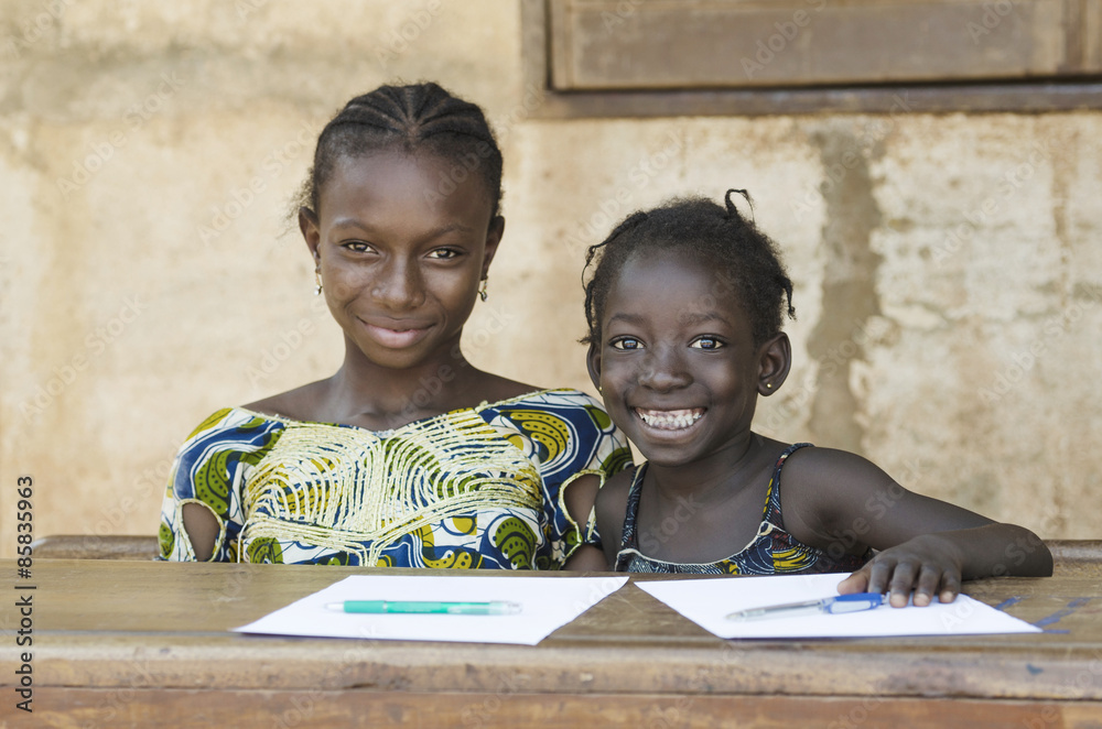 Two African Ethnicity Children Smiling Studying in a School Environment