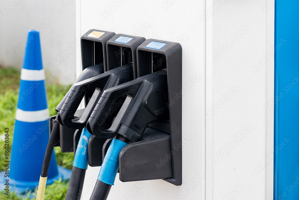 Electric car charging station for charge EV battery, Plug for vehicle with electric engine.