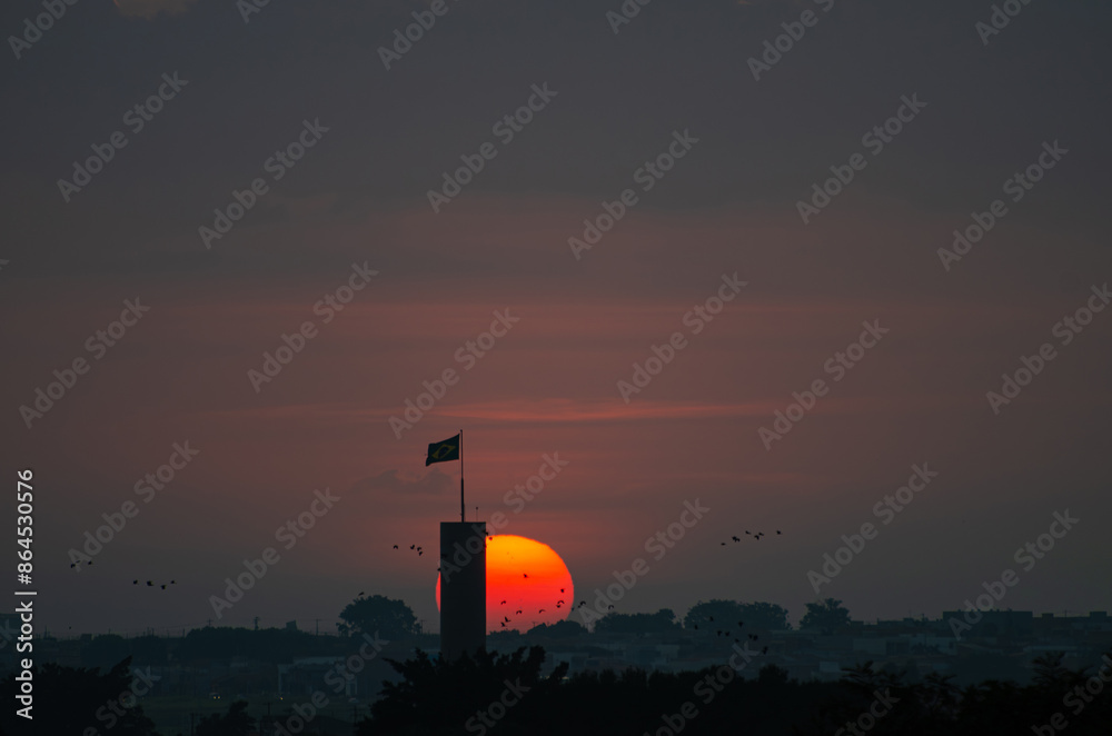 Sunrise, magnificent sunrise with its beautiful colors in winter Brazil, natural light, selective focus.