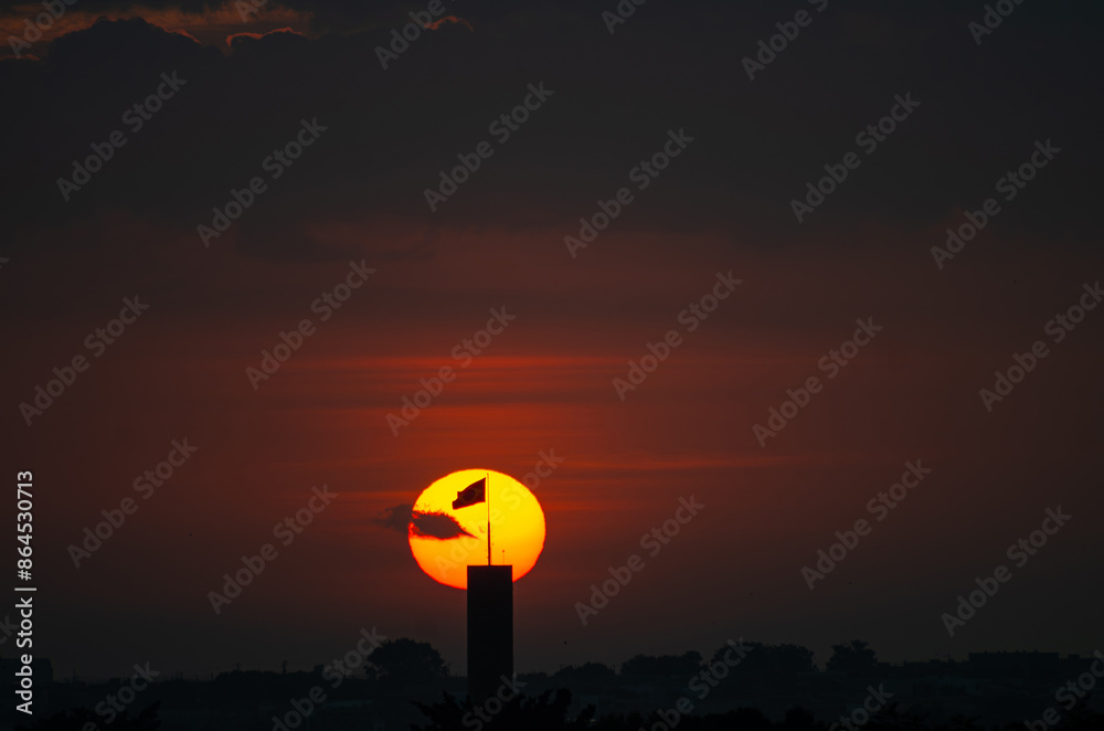Sunrise, magnificent sunrise with its beautiful colors in winter Brazil, natural light, selective focus.