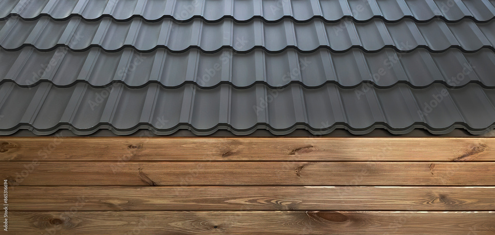 Plastic windows in gray lamination on the wall of a wooden house.