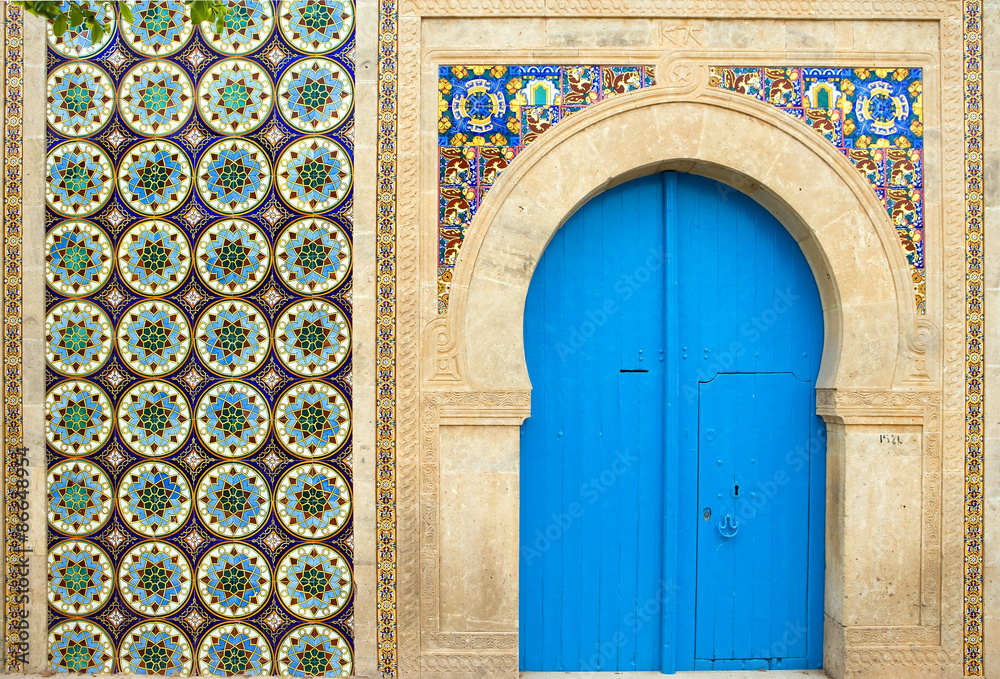Tunisia, El Jem, old houses of the Medina, detail of a door
