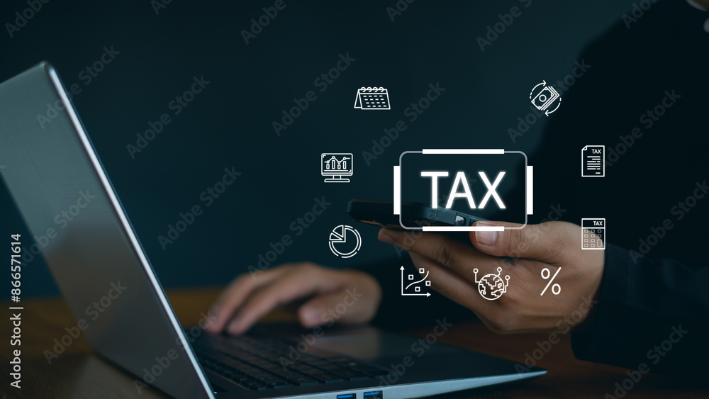 Calculation tax return. tax return form online for tax payment concept. Government, state taxes. Data analysis, paperwork, financial research, report, E-tax.