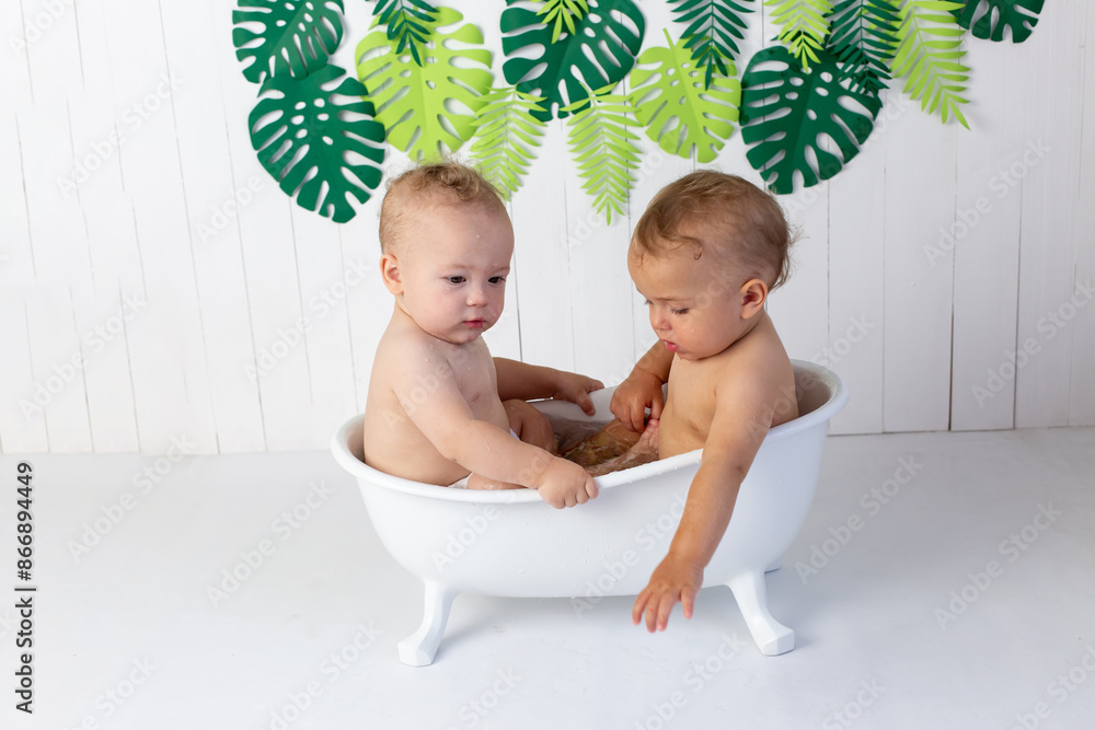 twin boys sitter. twin brothers at the age of one year old