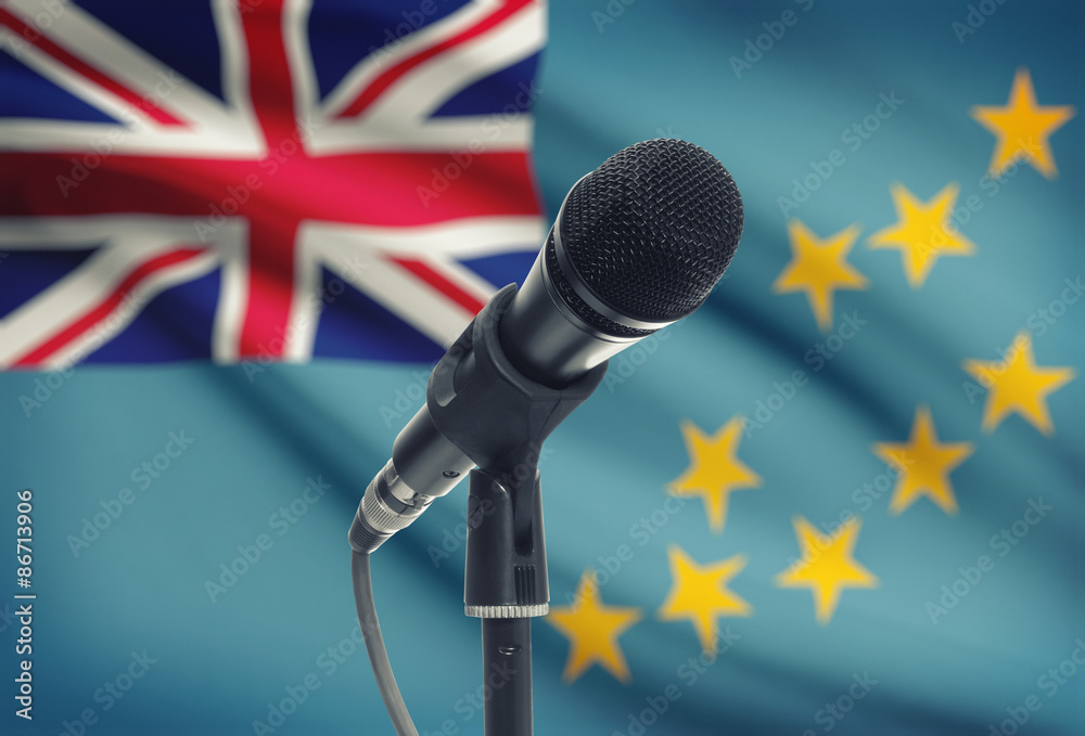 Microphone on stand with national flag on background - Tuvalu