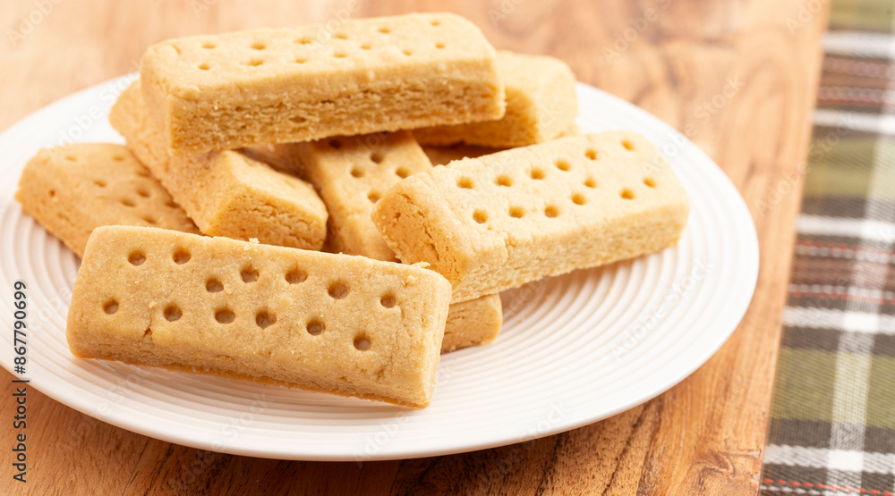 Classic Rectangular Butter Shortbread with Green Tartin Tablecloth