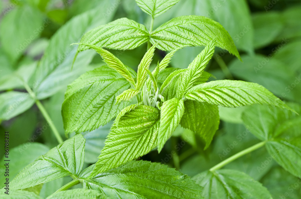 Green raspberry leaves