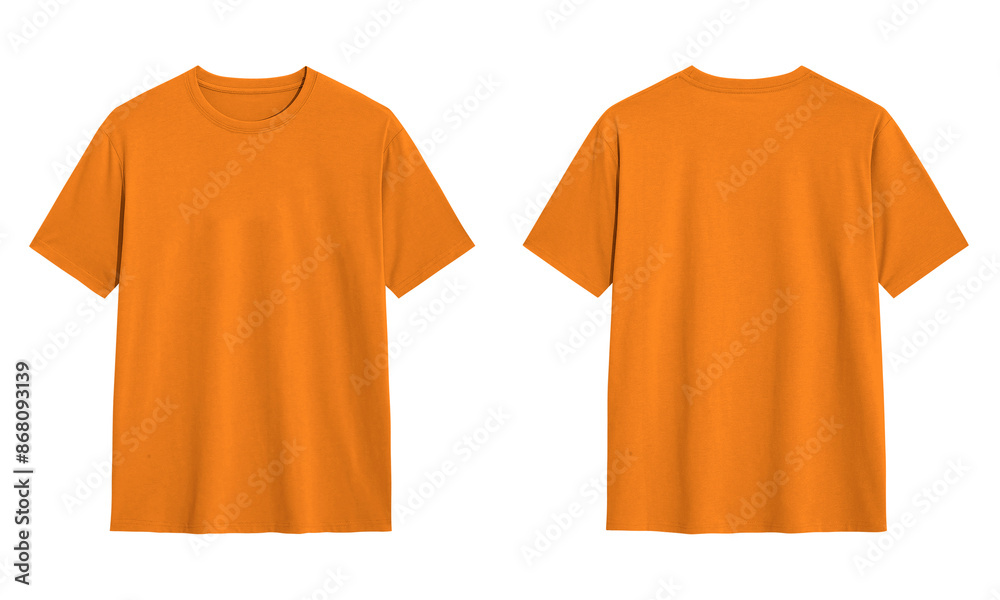 Mock up Orange t shirt front and back view, Ready for your mock up design transparent template