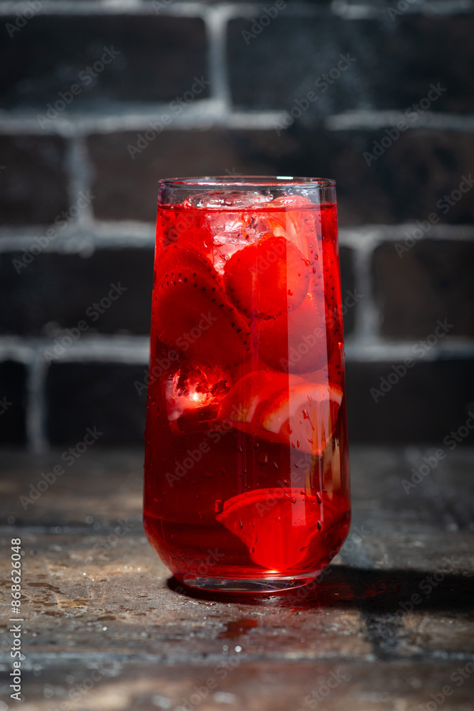 glass of refreshing cold fruit tea, vertical