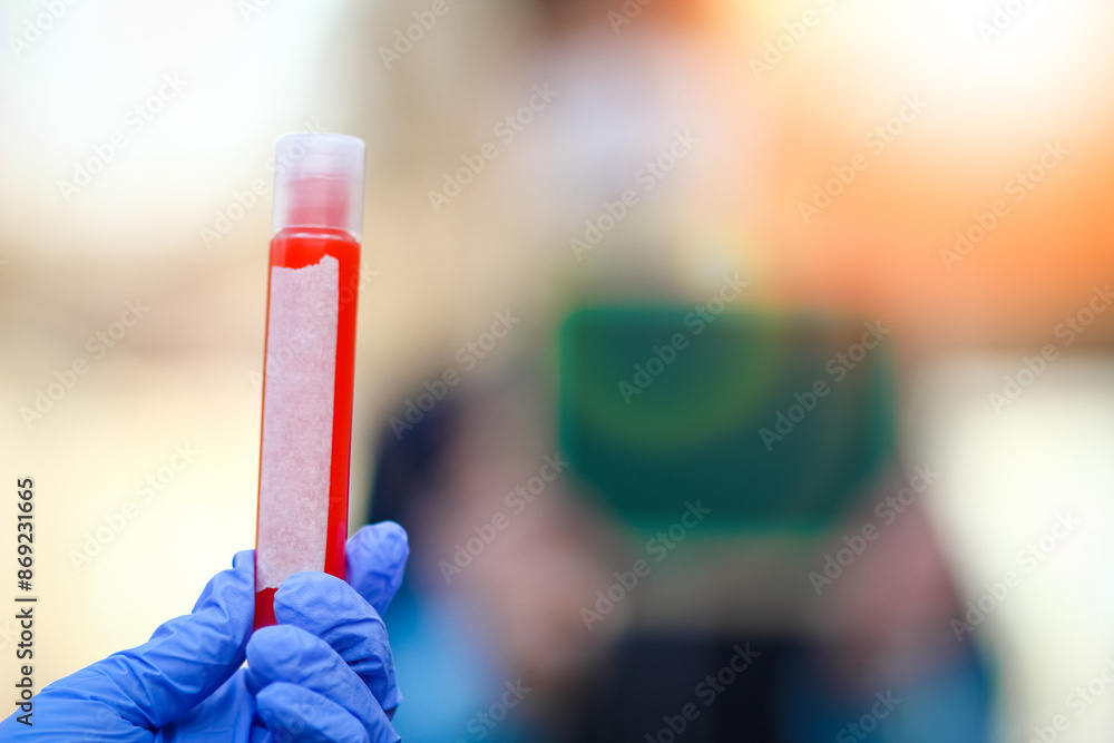 A Coronavirus blood sample in hands 2019-2020. Crown virus outbreak. Epidemic viral respiratory syndrome. China