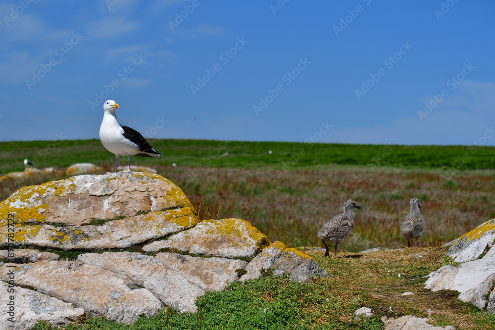 Seagull with a chicks. Great Saltee Island, Kilmore Quay, Co. Wexford, Ireland