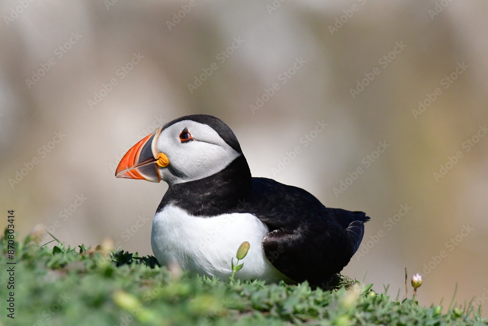 Atlantic puffin or common puffin. Great Saltee Island, Kilmore Quay, Co. Wexford, Ireland