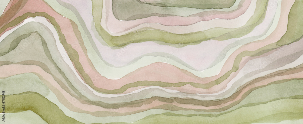 Ink Wave watercolor hand drawn strip line stain blot. Paper texture background.