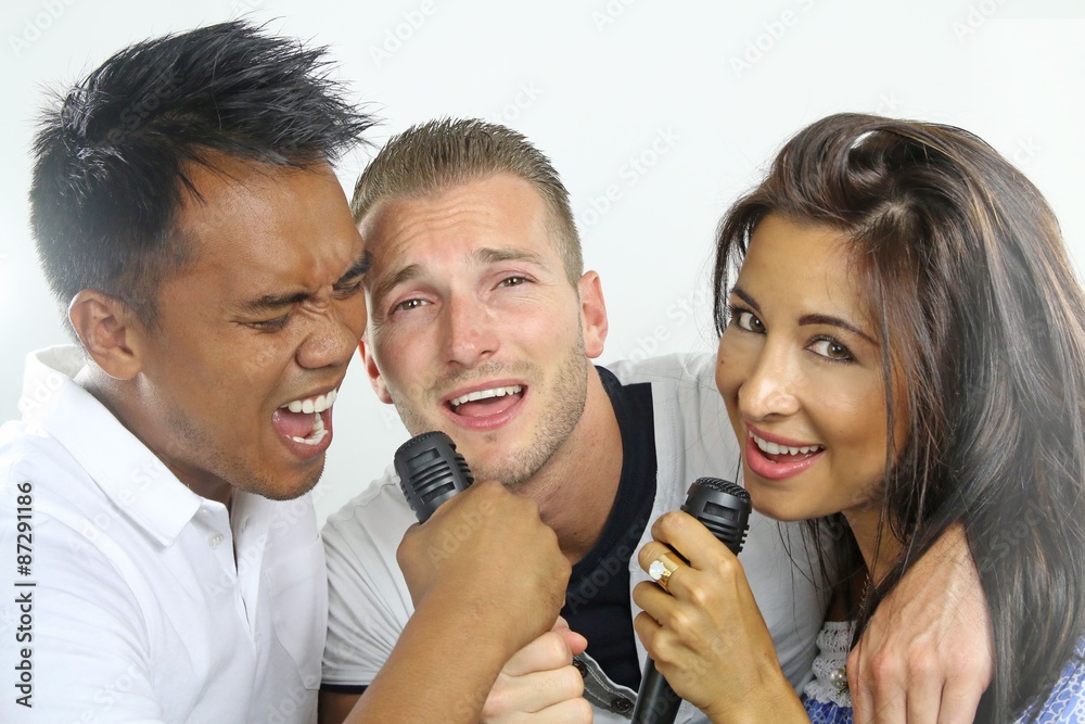 three friends singing