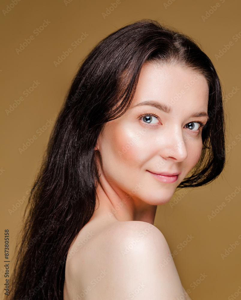 Graceful Young Woman with Long Hair. Portrait of a young brunette woman with bare shoulders and long hair.