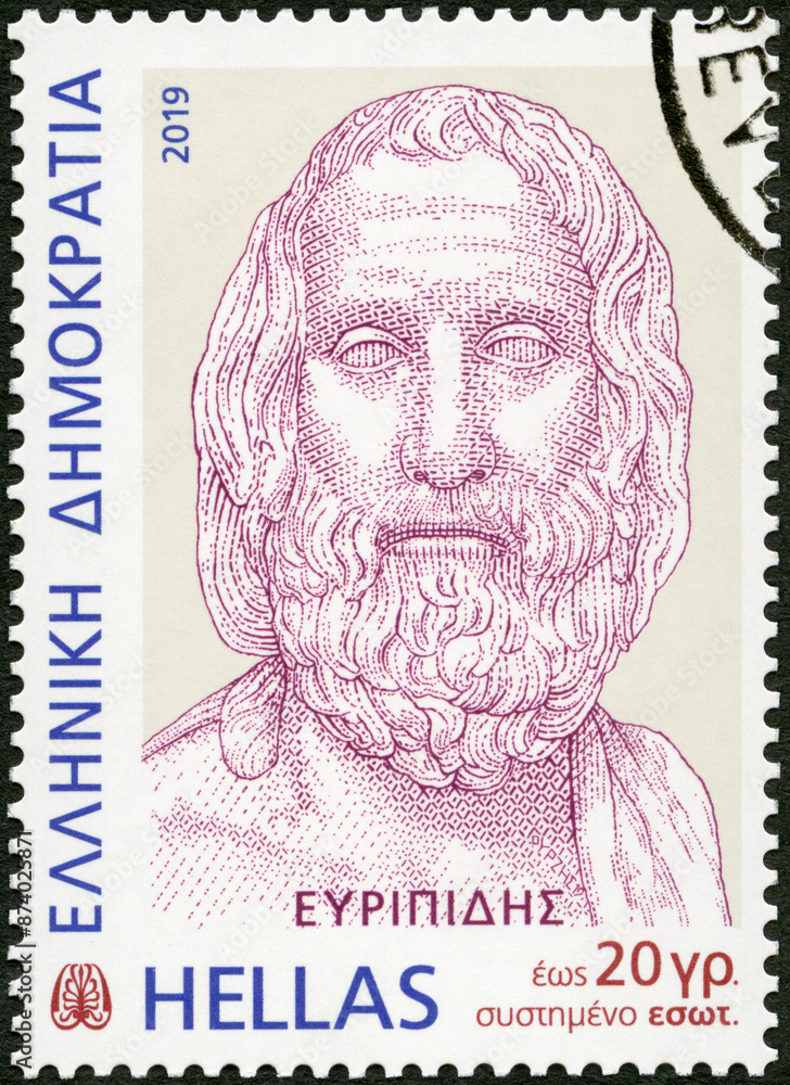 GREECE - 2019: shows Euripides (480-406 BC), Ancient Greek Writers, 2019