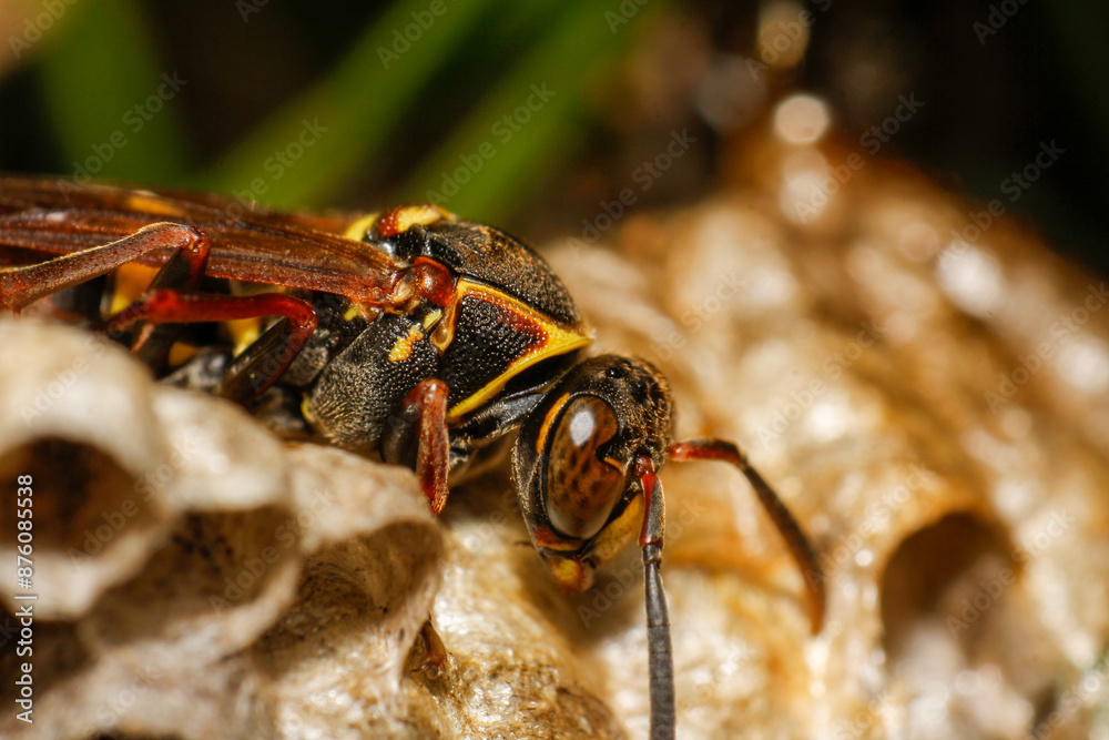 Paper Wasp Queen. close up of paper wasps (Polistes humilis) at their nest