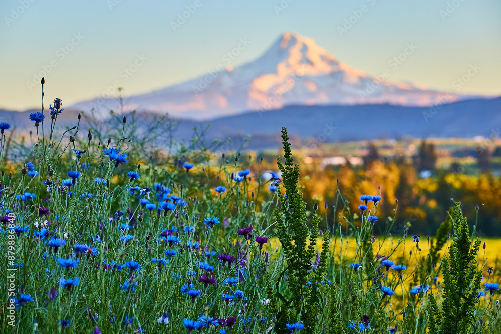 Wildflowers and Mount Hood at Sunrise Eye-Level View