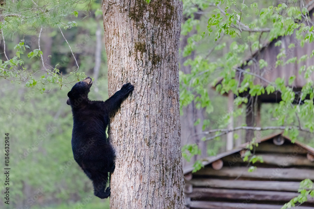 Black bear climbing a tree in the Great Smoky Mountain National Park.