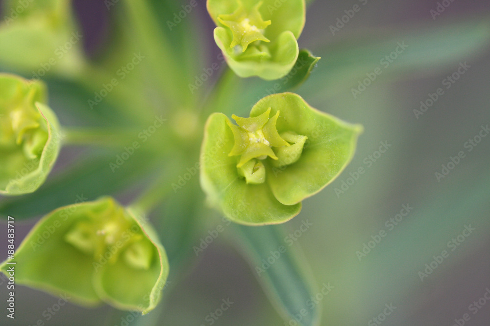 Euphorbia spp. Sawtooth Spurge flowers. Botany photo. Beautiful gardening. Green nature background without people.