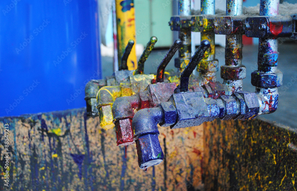 Cranes with CMYK paints at typography
