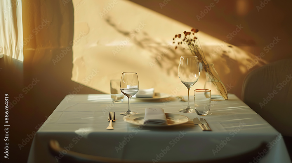 Elegant Restaurant Table Setting with Glassware