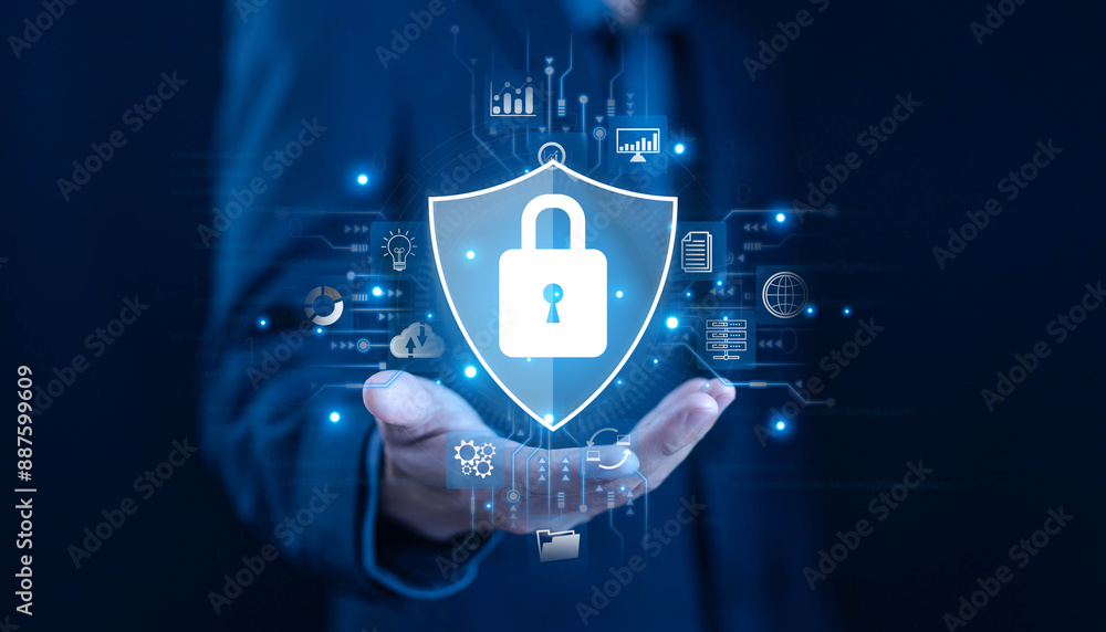 lock mark cybersecurity internet, protect attacks from a hacker. concept of password privacy on an online system, secure data from crime, virus cyber. cyber security technology digital information.