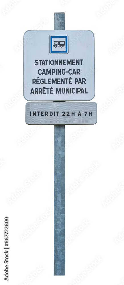 pancarte stationnement réglementé pour camping-car sur fond transparent
