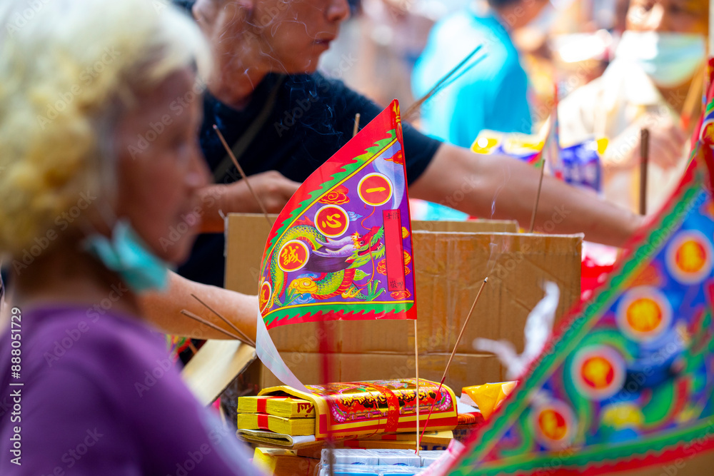 China, Ghost Festival, sacrifice, ghosts, worship products, Purdue flag