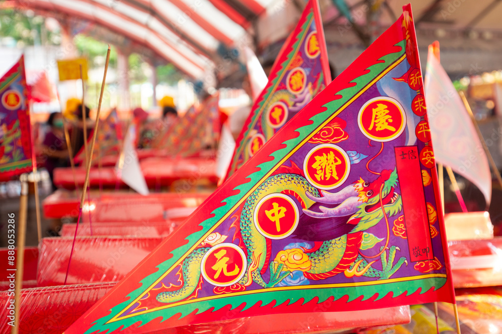 China, Ghost Festival, sacrifice, ghosts, worship products, Purdue flag