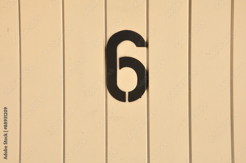 Nummer 6 auf Garagentor gemalt, mittels Schablone
