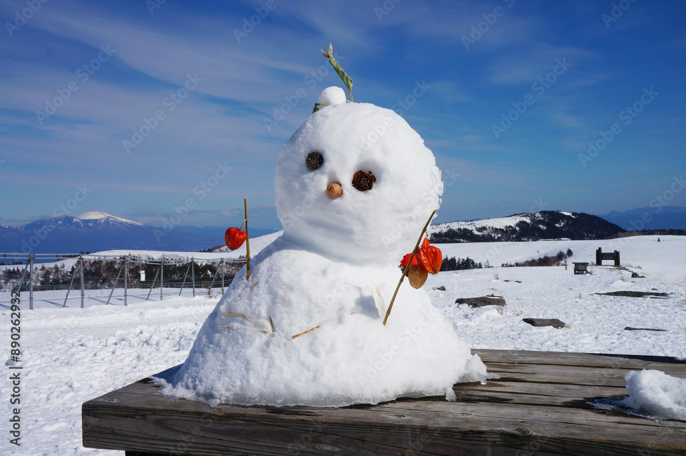 Cute Snowman Under a Clear Blue Sky(青空とかわいい雪だるま)