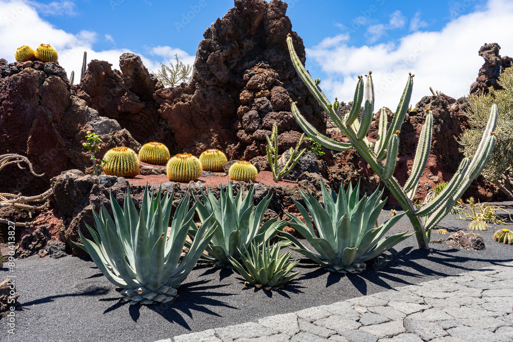 Kakteen im Kaktusgarten mit Windmühle, Lanzarote