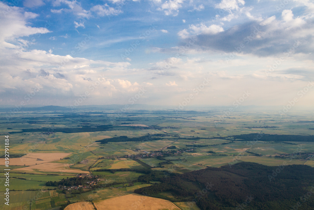 beautiful thick clouds in the sky from the height of the flight of the plane with a view of the continent and countries