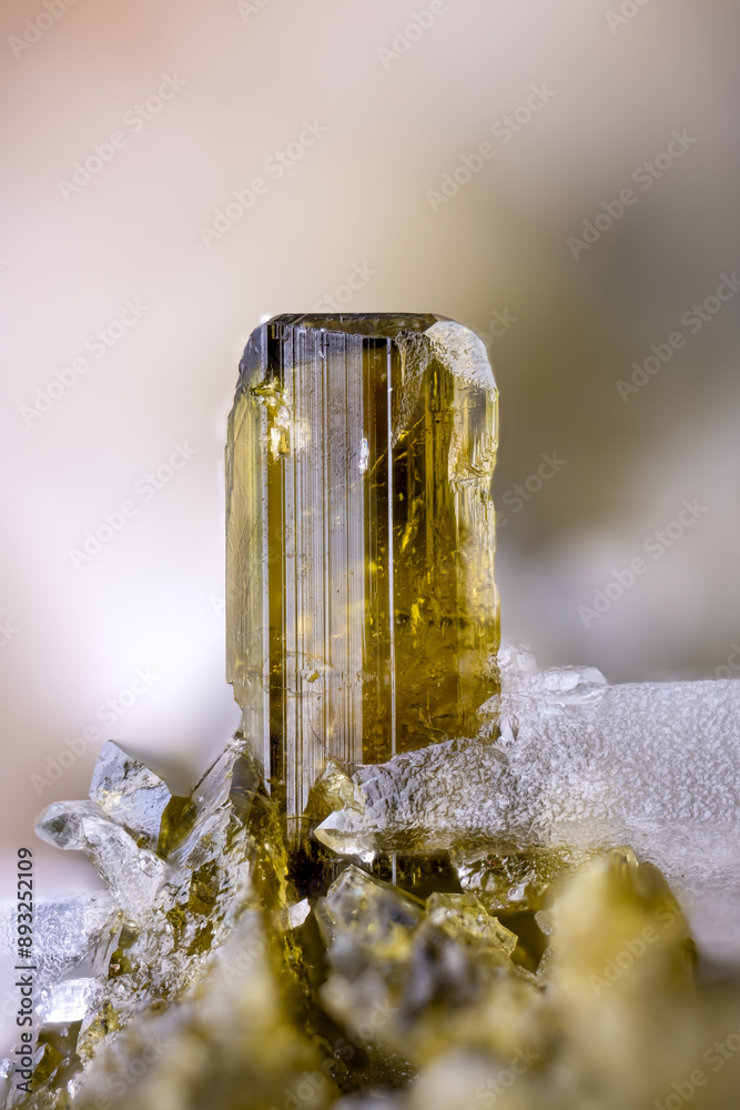 Epidote crystal Micro photography detail texture. Specimen from Peru. close-up polished semi-precious gemstone.