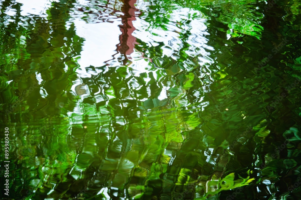 Reflection of trees in water. The reflection of the trees is very clear and it looks like they are floating on the water