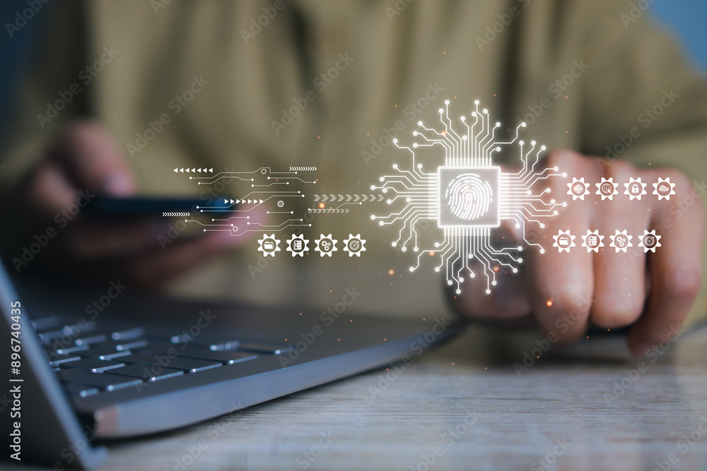 Fingerprint scanner futuristic digital processing of biometric identification.