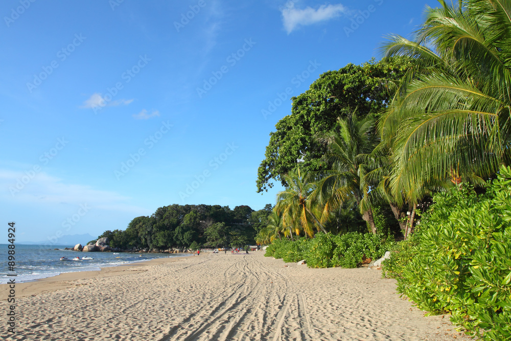 Sandy beach in Batu Ferringhi, Penang Island, Malaysia..