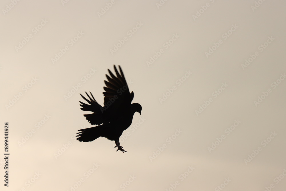 dove flying before sunset in the sky