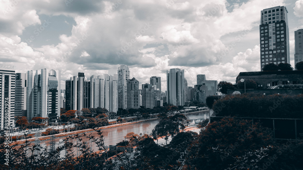 São Paulo Brazil skyline in black and white
